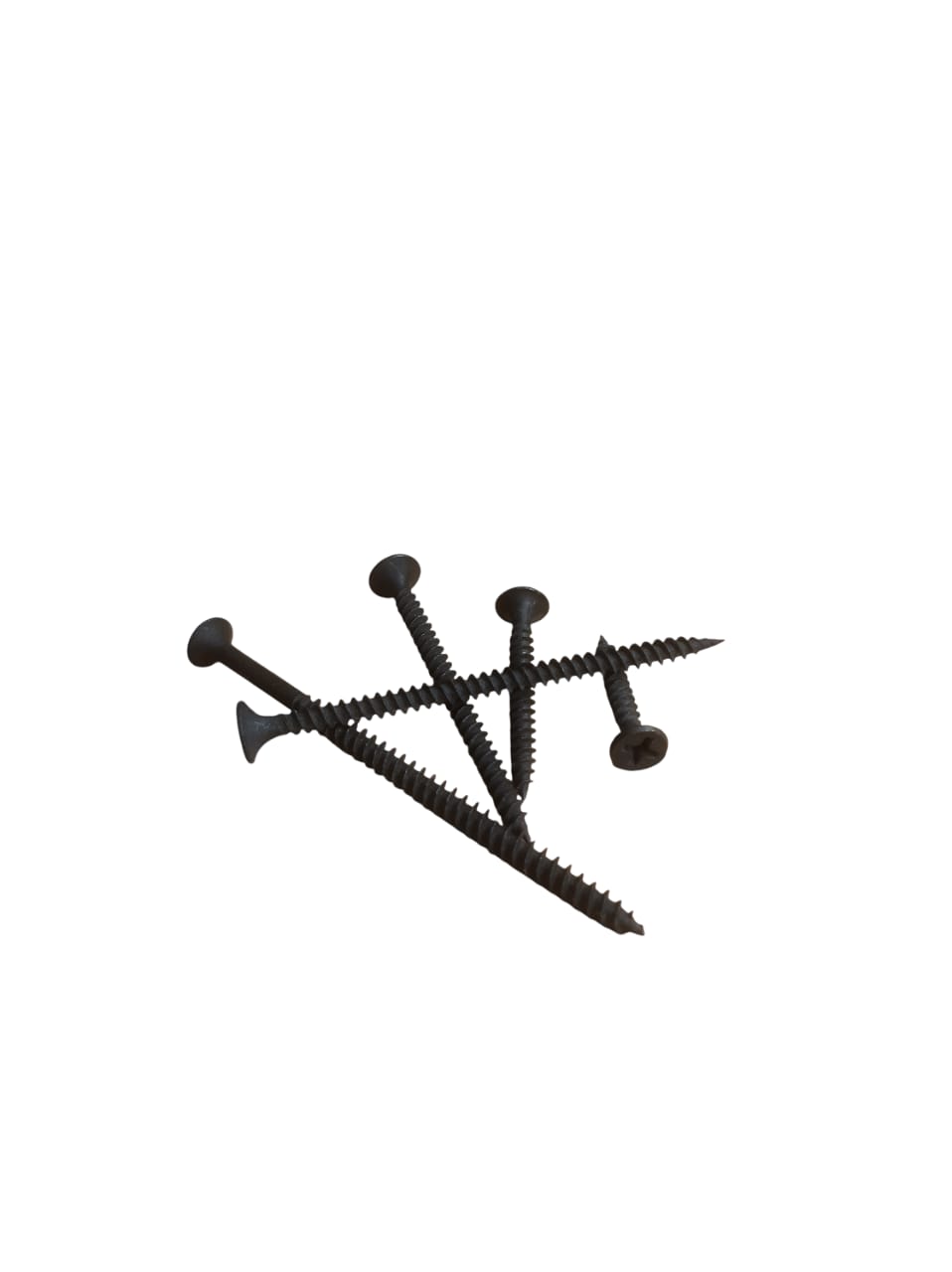 los tornillos punta fina para drywall fosfatados en todas las medidas: 6×1, 6×1 1/4, 6×1 1/2, 6×2, 6×2 1/2 y 8×3.
